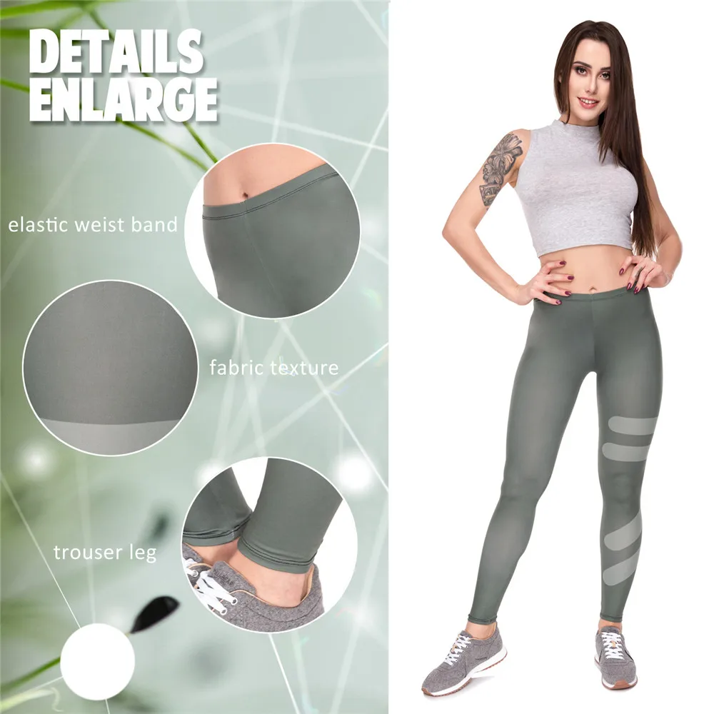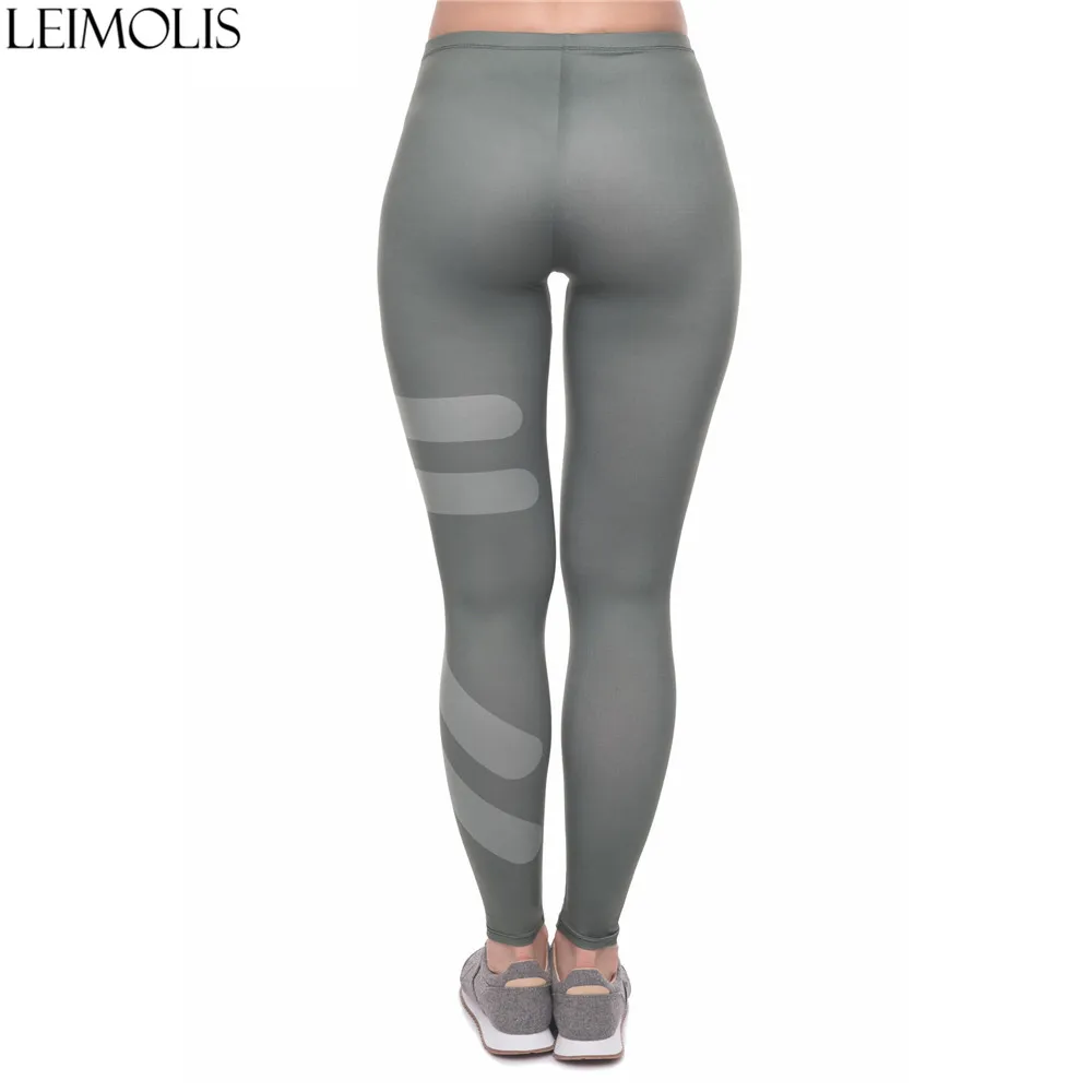 Images of LEIMOLIS 3D print gray striped fitness push up workout leggings women plus size High Waist punk rock sexy leggins :