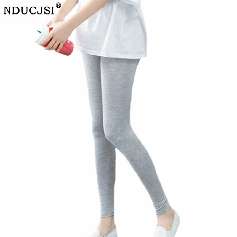 Promo NDUCJSI Stretchy Leggings Cotton High Elastic Waist Pants Summer Leggings Modal Pant WomenBlack Gray White Legging solid color