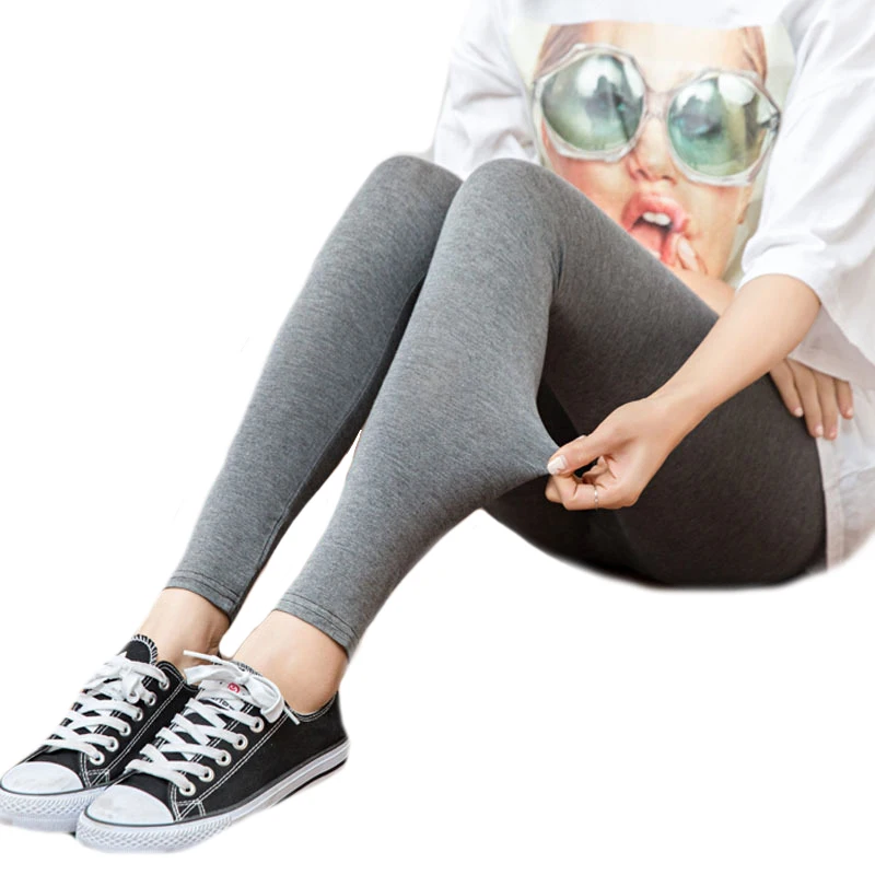 Images of NDUCJSI Stretchy Leggings Cotton High Elastic Waist Pants Summer Leggings Modal Pant WomenBlack Gray White Legging solid color :