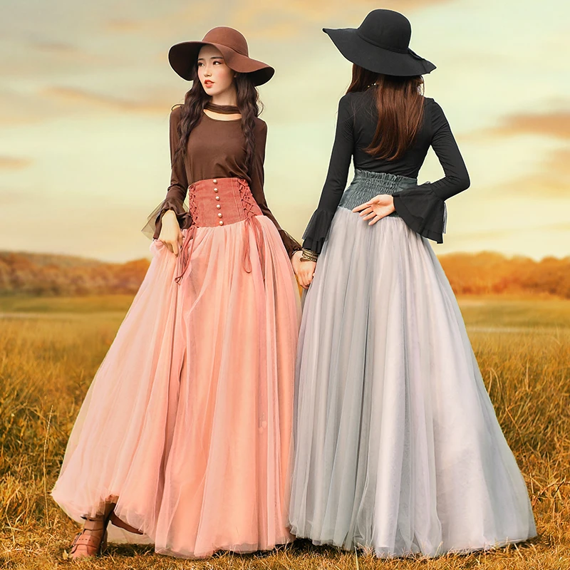 Promo Free Shipping 2017 New Fashion Long Maxi High Waist Autumn Royal Multi-layer Gauze Bandage Boshow Skirts For Women S-L Big Hem