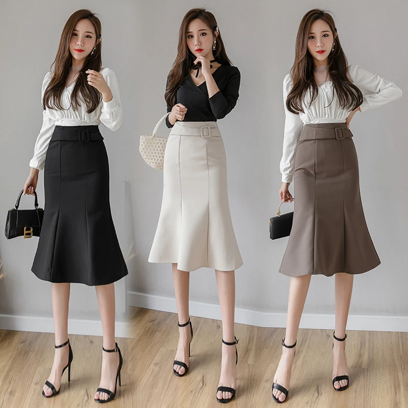 Get this Women Skirt 2020 Spring New Skirt Fashion High Waist Thin A-line Skirt Temperament Hip Skirt Female Fishtail Medium Long Skirt with limited time discount by pressing the button below