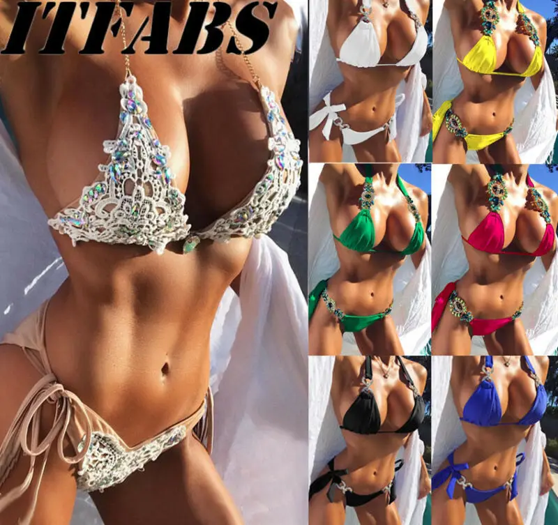 Get this UK 2020 Fashion Women Solid Color Padded Push-up Bikini Bra Set Swimsuit Bathing Suit Swimwear Beachwear Pink Arm Green White with limited time discount by pressing the button below
